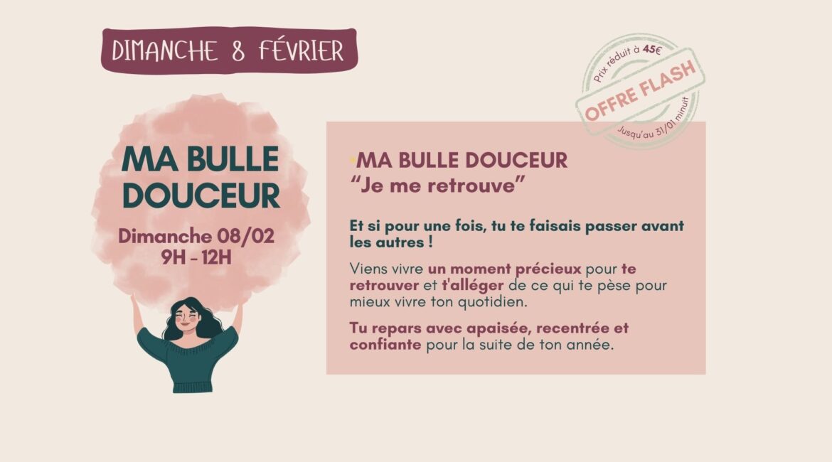 👉 Accessible à toutes, une matinée en petit groupe (max 8 personnes) avec des ateliers de visualisation, de mots ressources, de respiration , de créativité libre et d’autres surprises à paillettes ! Un véritable bol d’air pour se libérer de la pression quotidienne et repartir plus sereine.